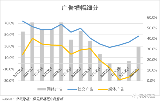 国内随着疫情的消退,用户流量会有所下滑,曝光量随之下降,广告效果不如Q1。其次,金主爸爸对广告的支出通常是提前的,比如,雅诗兰黛预计在3月上线新款精华,那么其很有可能在2月就已经预约了广告的投放。按照这个道理,广告主对于疫情的反映也会是滞后的,这种需求的下降很有可能出现在Q2。