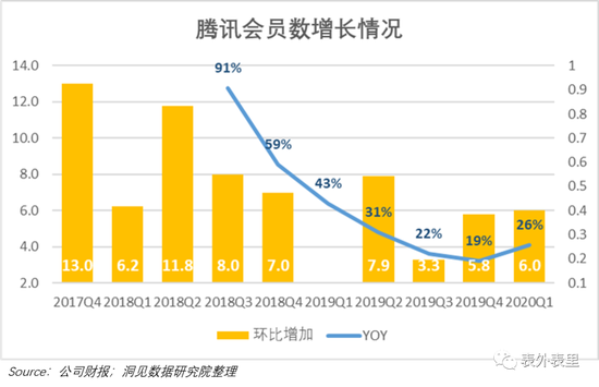 然而2020Q1,人们既进不了影院,也出不了家门,腾讯视频的会员环比增加值反而比去年Q4还多,达到600万人次。这样逆周期的增长,足以体现疫情对视频版块的美化效果。