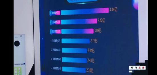 6月1日晚12点直播将尽时,大屏幕上列出了各省销售公司的战绩排名,湖南、江苏和四川位列前3,销售额分别为4.44亿、3.42亿和3.09亿元。