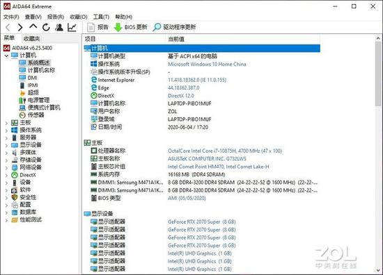 这台ROG枪神4Plus配备的是英特尔最新推出的i7-10875H处理器,拥有八核心十六线程,基准频率2.3Ghz,最大睿频5.1Ghz,TDP45W。