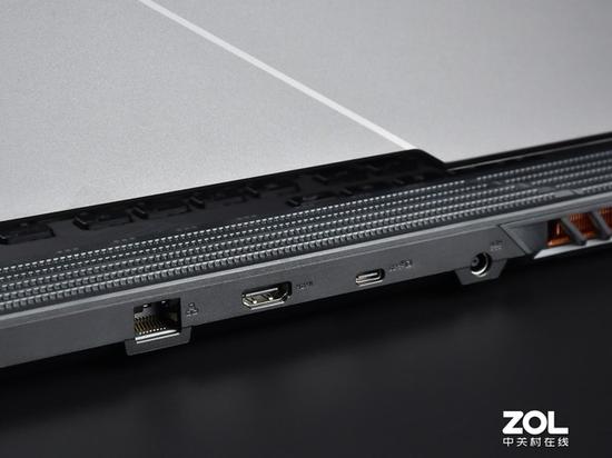 扩展方面,ROG枪神4Plus的接口分布在机身的左侧与后侧,机身后侧接口从左至右依次为RJ45网线接口,HDMI2.0b接口、USB3.2TYPE-C接口和电源接口。