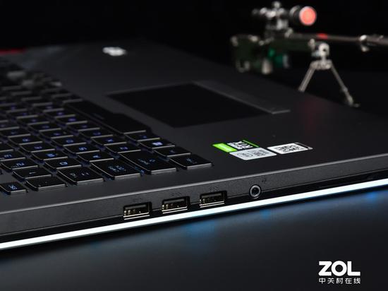 机身左侧依次为3个USB3.1TYPE-A接口和一个3.5mm耳麦接口。