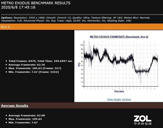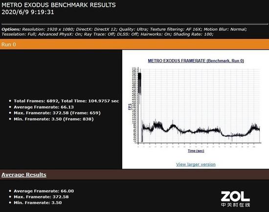 在《地铁:离去》的测试中,画质调整为“Ultra”,先不打开光线追踪,平均帧数:66