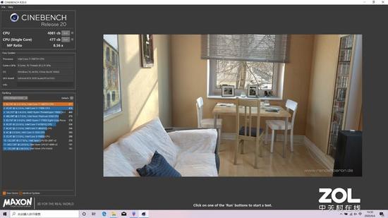 使用CINEBENCH R15进行测试,单核得分204cb,多核得分1876cb。在CINEBENCH R20中,单核得分477cb,多核得分4081cb。