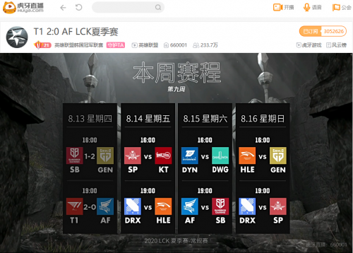 8月14日16时,虎牙独播英雄联盟韩国冠军联赛夏季赛第九周第二日即将正式开战。首战SP迎战KT,面对状态起伏不定的老牌豪强SP能否击败对手终结连败;第二场DRX迎战HLE,老队友相逢Chovy能否击败Viper拿回榜首。虎牙直播除了独家官方直播间,更有精彩二路解说以及明星选手第一视角直播,赛后节目《加班了LCK》更是看点十足。而备受期待的LCS/LEC常规赛后半程也在火热直播中,请观众准时锁定虎牙直播间660001。