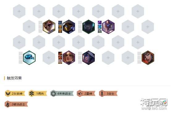 剑士多数廉价,开局拿到天使可以轻易凑成3剑士,打造1到2件输出装就能保证前期连胜。以天使为首的3剑士能搭配的阵容较多,这里推荐【3剑、4未来、2破法、2星神】多羁绊阵容,这也是目前版本3剑系列玩法中最强阵容之一。