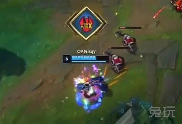 在6月29日的比赛中,C9轻取了IMT拿下了夏季赛六连胜!而在这场比赛中,C9中单选手Nisqy亮出了FPX战队的图标!