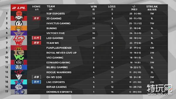 *TES与JDG一起获胜,IG锁定常规赛第三